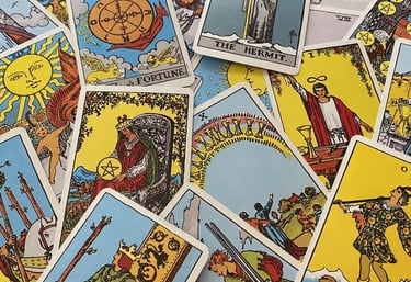 Tarot Card Reading is interpreting symbolic messages from Tarot Cards to gain insights into the past, present, and future.